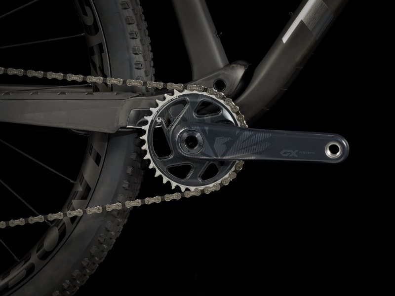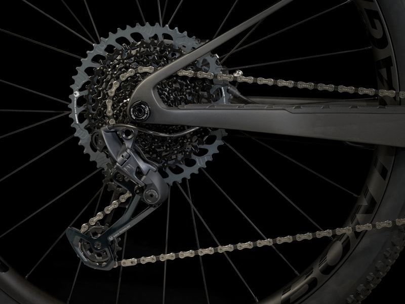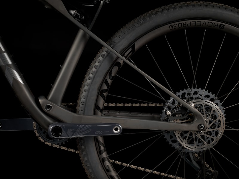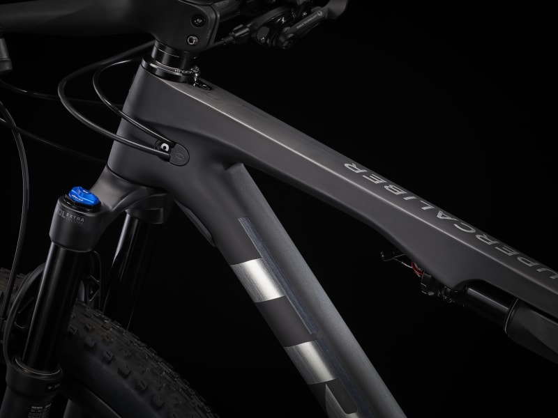 Telaio ultraleggero in carbonio OCLV Mountain con 60mm di escursione, forcella Fox Performance 32 Step-Cast da 100mm ed esclusivo ammortizzatore IsoStrut FOX Performance di Trek, progettato specificamente per i modelli Supercaliber. In più, doppio bloccaggio remoto delle sospensioni, trasmissione SRAM GX Eagle 1×12 con guarnitura in carbonio e ruote in carbonio Bontrager Kovee Pro 30 con mozzo posteriore Rapid Drive a 108 denti per un innesto istantaneo.